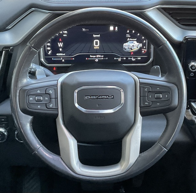 1-Owner Trade-In, Sierra 1500 Denali, 4D Crew Cab, 4WD, 10-Way Power Driver Seat Adjuster w/Lumbar, 10-Way Power Passenger Seat Adjuster w/Lumbar, Adaptive Cruise Control, Adaptive suspension, Apple CarPlay/Android Auto, Bed View Camera, Denali Reserve Package, Forge Perforated Leather Seat Trim, Front dual zone A/C, GMC MultiPro Power Steps, Heated 2nd Row Outboard Seats, Heated Driver & Front Outboard Passenger Seating, Memory seat, Multicolor 15" Diagonal Head-Up Display, Navigation System, Power Sunroof, Premium Bose 7-Speaker Sound System, Rear Camera Mirror, Remote keyless entry, Remote Vehicle Starter System, Steering Wheel Audio Controls, Technology Package, Ventilated Driver & Front Passenger Seats, Wheel Locks (Set of 4) (LPO), Wheels: 22" x 9" Painted Aluminum, Wireless Charging.